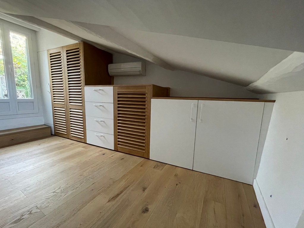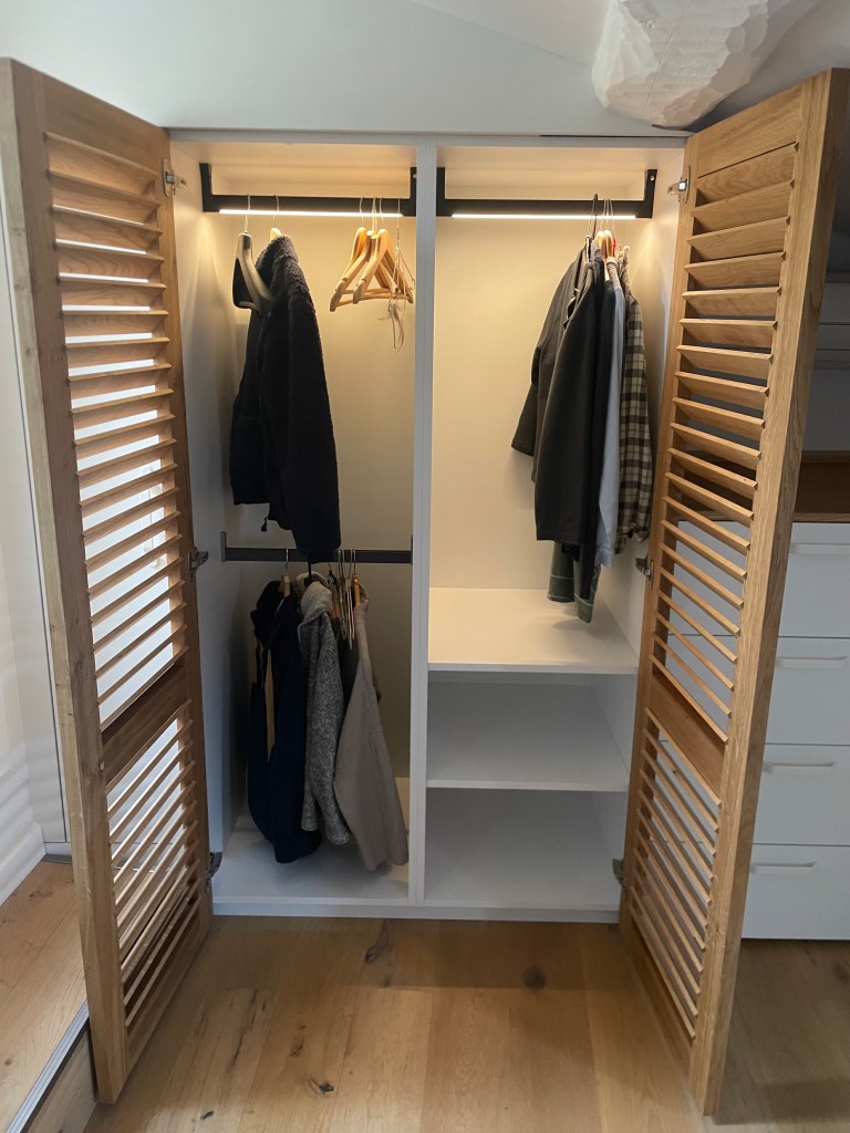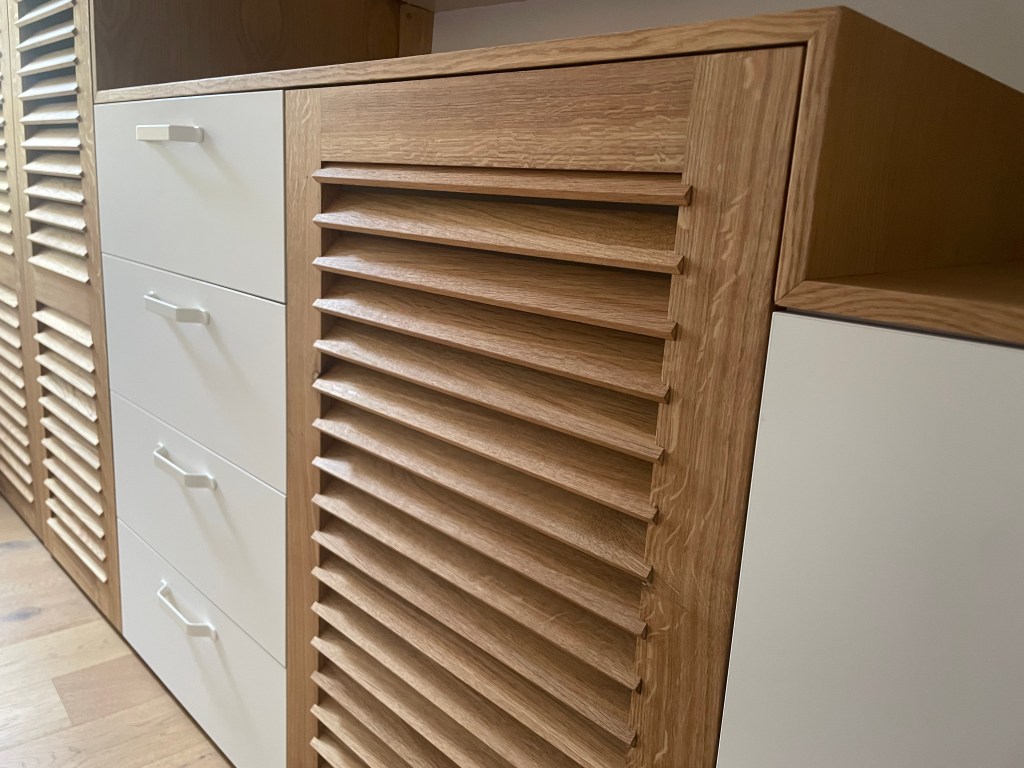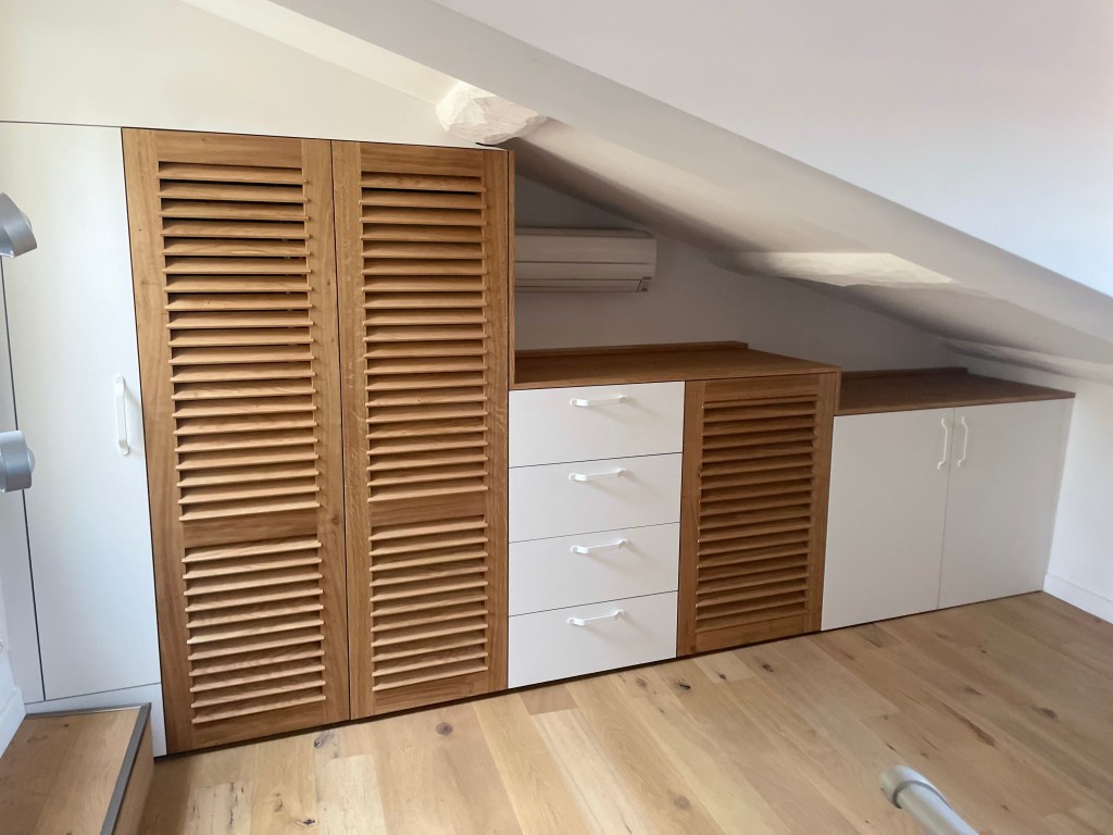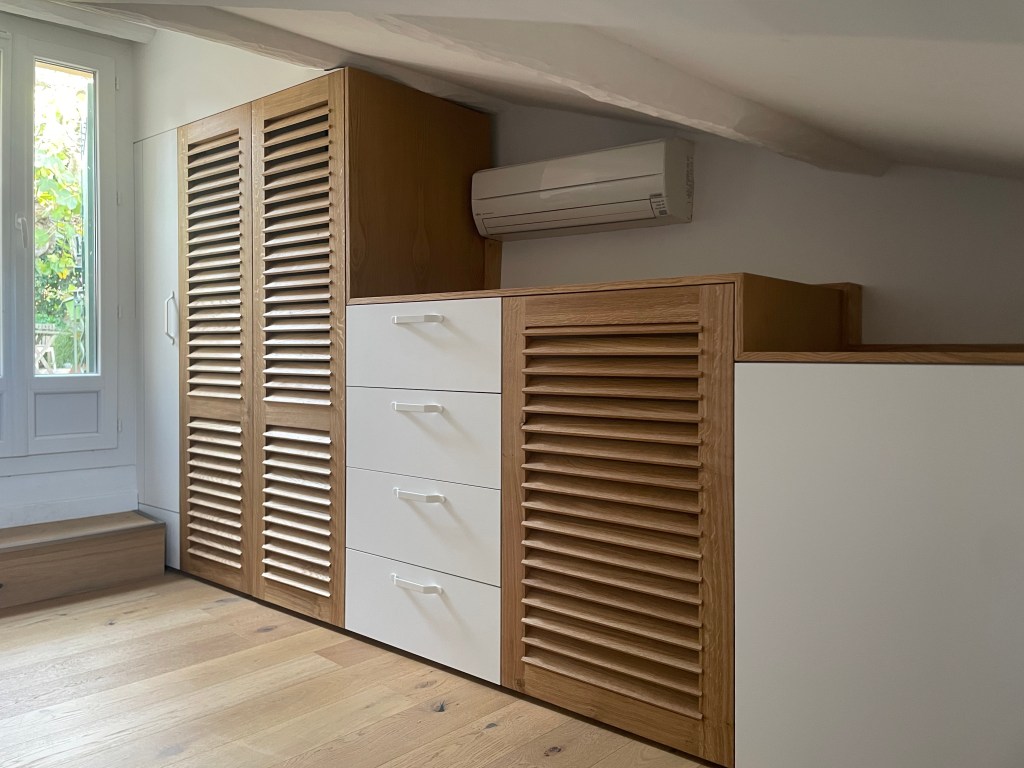 Dressing avec portes persiennes en Chêne massif faite sur mesure à l’Atelier !